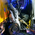 S poltovornjakom silovito trčil v vlačilec, poškodovan voznik ostal ukleščen v vozilu
