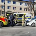 Pri avtobusni postaji v Domžalah trčili osebni vozili, ena oseba utrpela poškodbe