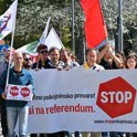 Kot je pred stavbo ministrstva za delo, družino in socialne zadeve spomnila predstavnica sindikata Mladi plus Sabina Leben, so jim pristojni pred dvema letoma na konferenci o prekarnosti v državnem svetu podali zavezo, da bodo do konca istega leta pripravili celostno strategijo za odpravo prekarnosti na slovenskem trgu dela. "Dve leti pozneje z razočaranjem ugotavljamo, da so bile vse te obljube le navadne bučke, ki jih danes vračamo tistim, ki so nam jih prodali