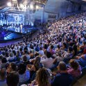 POKLON SREČKU KOSOVELU TUDI V AVDITORIJU: S Himno poeta na portoroškem odru združeni kraški godbeniki