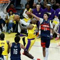 LeBron James je z 21 točkami, 12 podajami in 10 skoki zrežiral zmago Los Angeles Lakersov nad Washingtonom s 120:101. Ključna je bila druga četrtina, ki so jo Jezerniki dobili s 40:18.